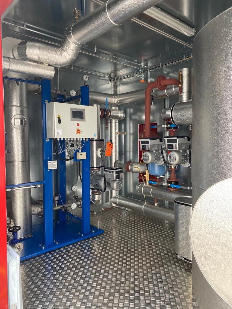 Verbaut wurde eine JUMAG Dampf Anlage, Umformer Station und Heisswasserspeicher.